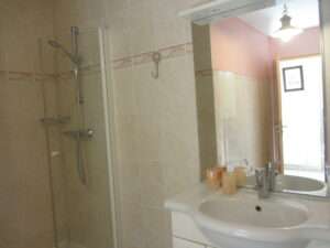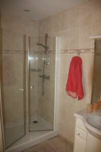 - Salle de bain privative avec douche et adoucisseur d’eau